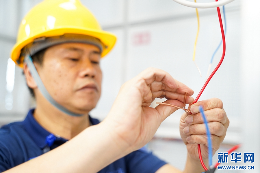 6月19日,选手在为智能家居线路安装保护设施。新华网 肖和勇 摄