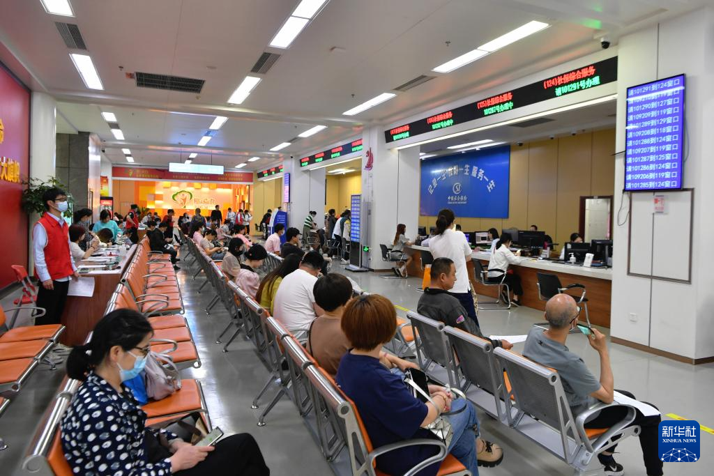 市民在福州市政务服务中心社保综合服务柜台前等待办理业务。新华社记者 魏培全 摄