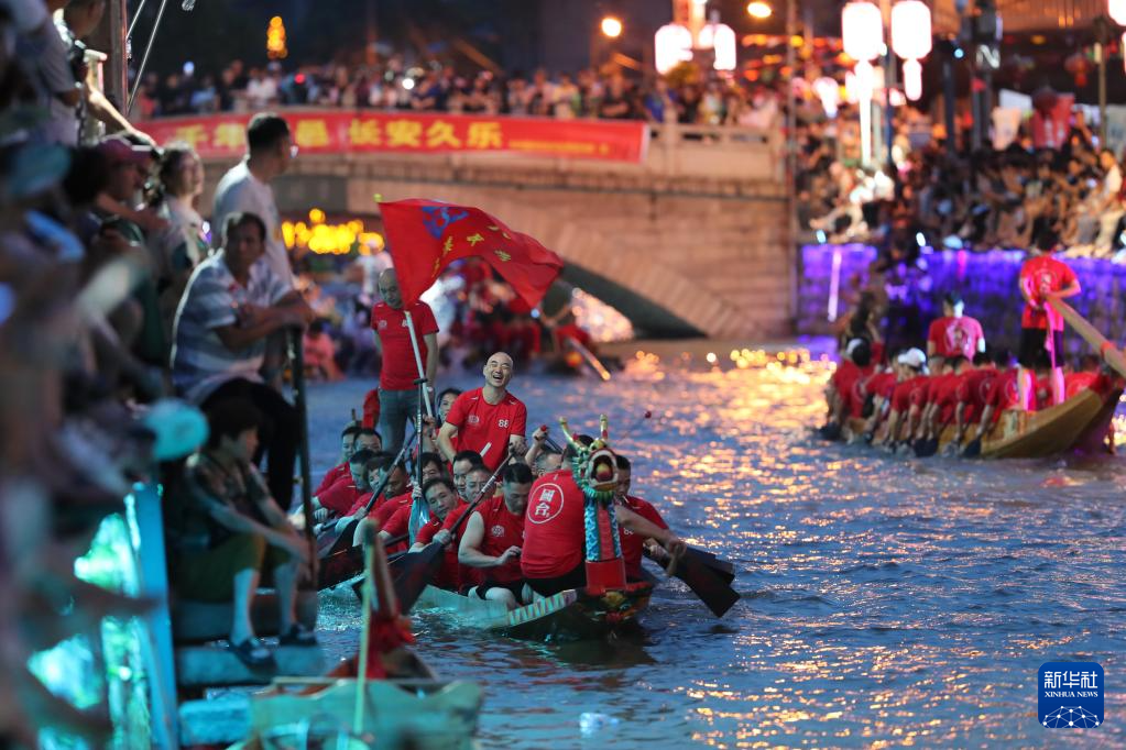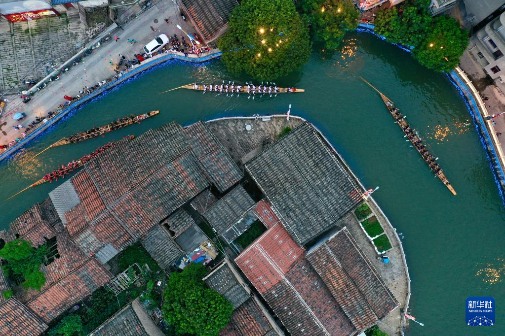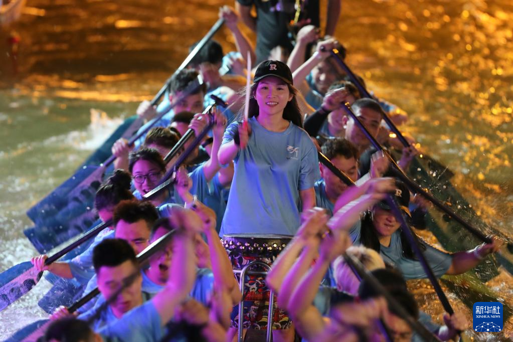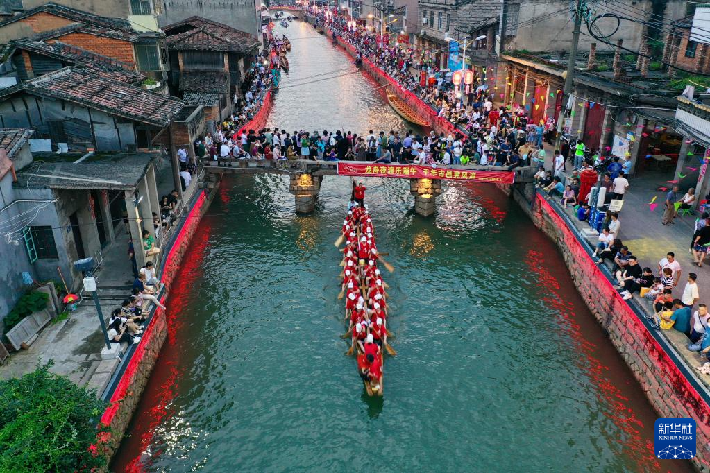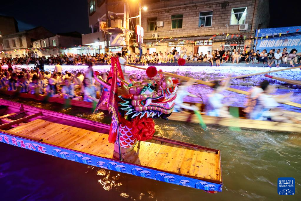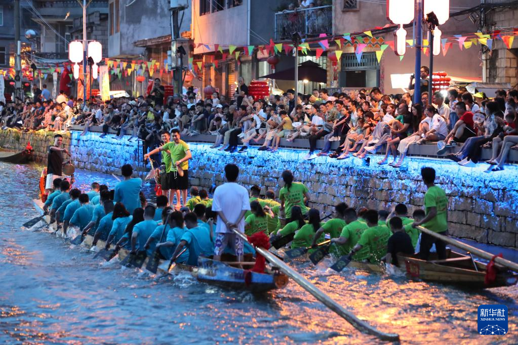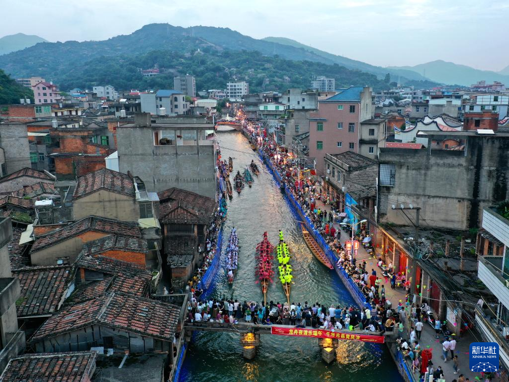 福州市长乐区三溪村在进行龙舟夜渡迎端午活动(6月20日摄)。新华社记者 姜克红 摄
