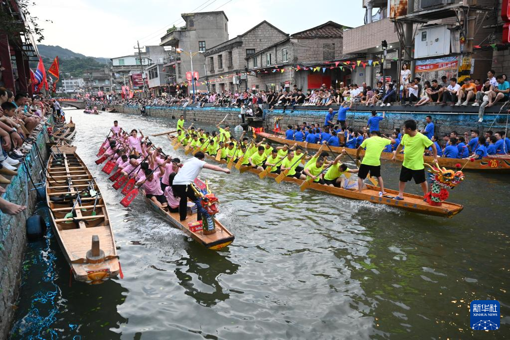 福州市长乐区三溪村,龙舟在穿村而过的小溪中竞渡迎端午(6月20日摄)。新华社记者 姜克红 摄