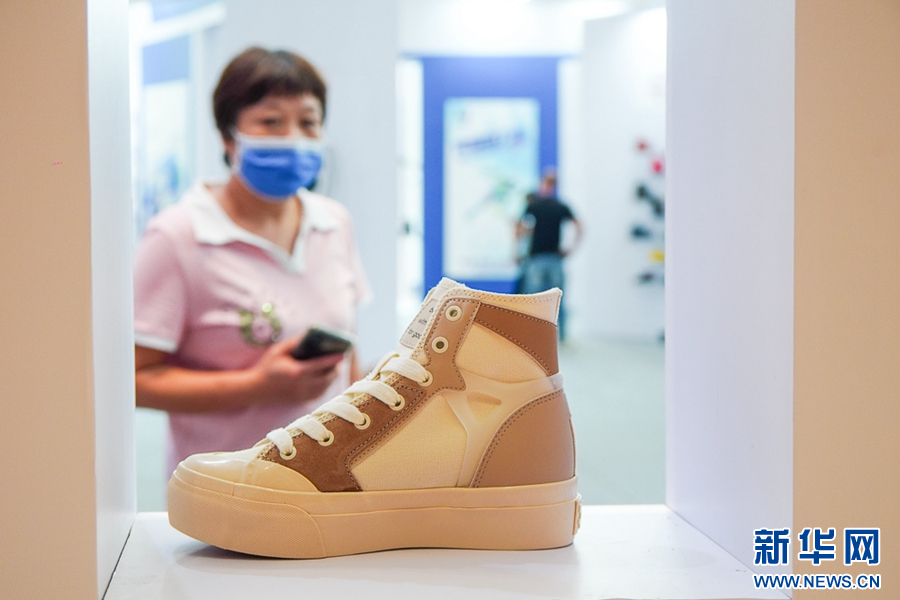 6月21日,“莆田鞋”自主品牌特装展区,游客在观展。新华网 肖和勇 摄