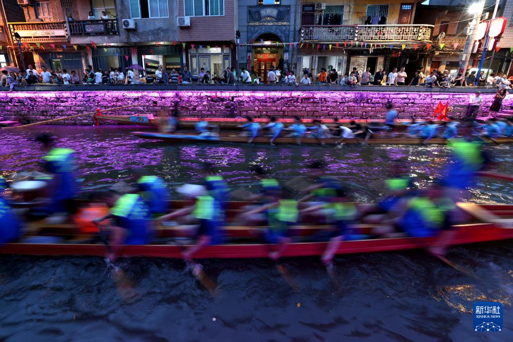 这是6月17日在福建省福州市长乐区江田镇三溪村拍摄的三溪夜渡龙舟活动现场。新华社发(王旺旺 摄)