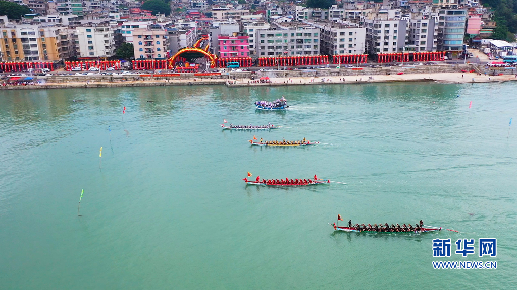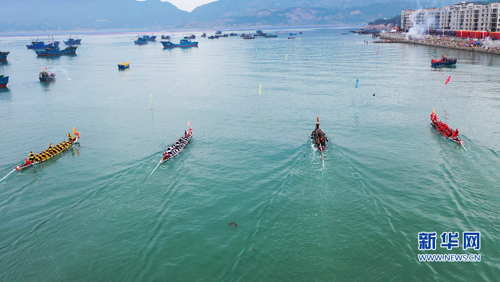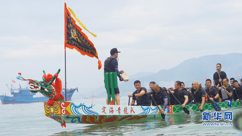 海上赛龙舟,是定海村的传统盛事,祈愿风调雨顺、幸福安康。新华网 肖和勇 摄