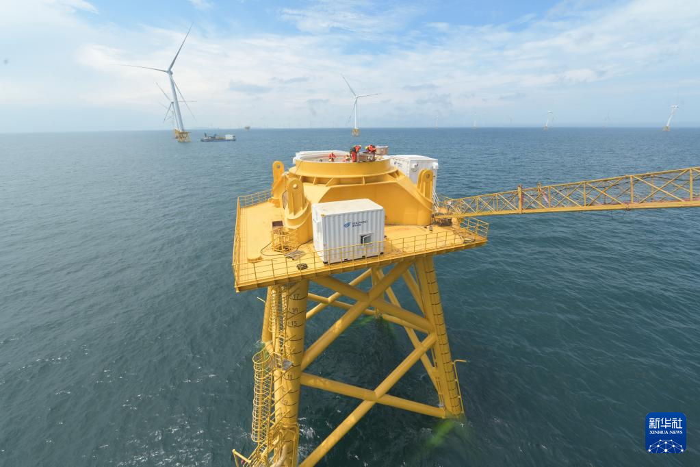 6月24日拍摄的16兆瓦大容量海上风电机组导管架基础。 新华社记者 林善传 摄