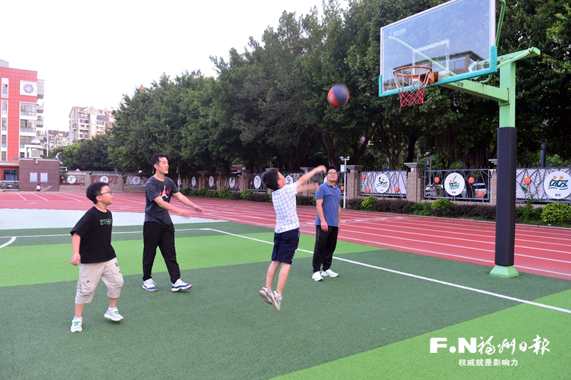 傍晚时分,福州市象园小学的操场人气十足,附近居民不断进入操场,有的在篮球场上畅快打球,有的在塑胶跑道上愉快健步,还有的在操场一角欢快地跳起绳来。