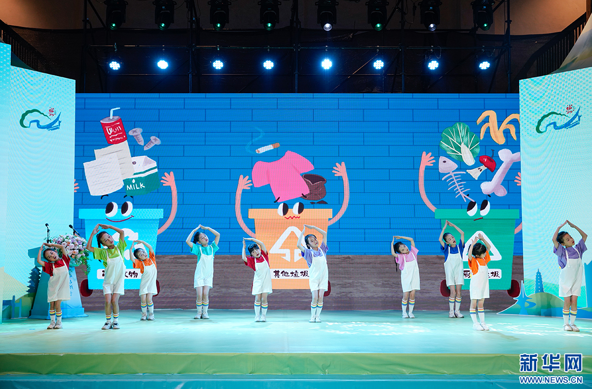 小朋友们以节目表演的形式,号召绿色低碳生活。 新华网 蒋巧玲 摄