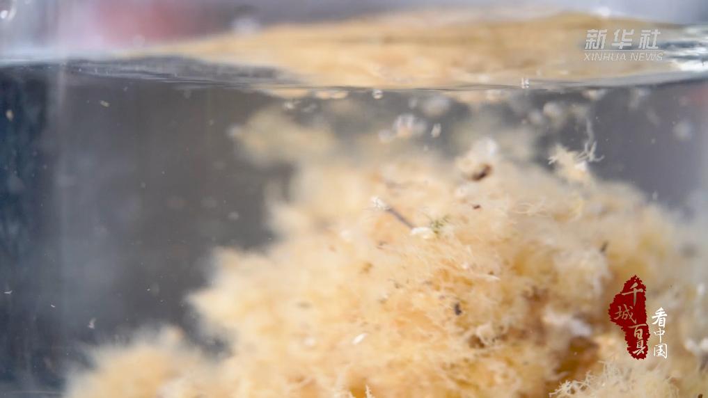石花膏的主要原料为石花菜,是一种生长在台湾海峡中潮或低潮带礁石上的食用海藻。顶着烈日,渔民会将石花菜从礁石上一点点刮下来,反复浸泡、晾晒六次。再放入锅中,倒入少许白醋,小火熬煮,慢慢萃取出石花菜中的琼脂。繁琐的工艺,祛除了石花菜的腥味,留下了夏日海洋的凉爽。