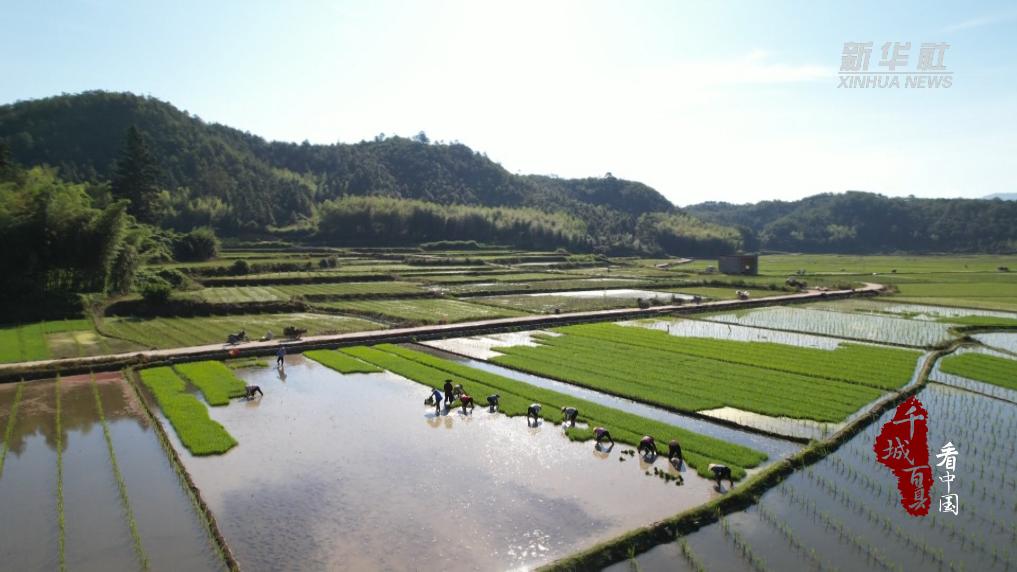近日,在福建省宁化县各乡镇的田间地头,广大农户正积极抢抓节令,开展水稻插秧工作,秧田里随处可见热火朝天的劳动场景。
