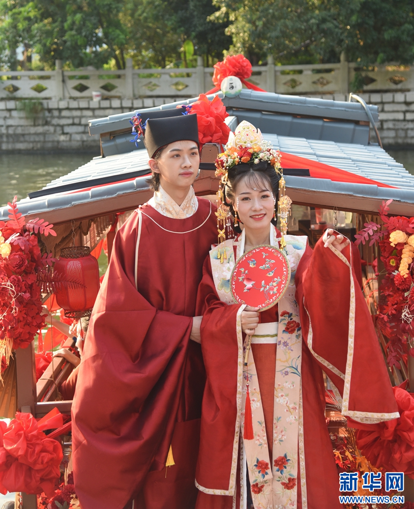 活动配套举行了国风水上婚礼表演。新华网发(朱崇飞 摄)