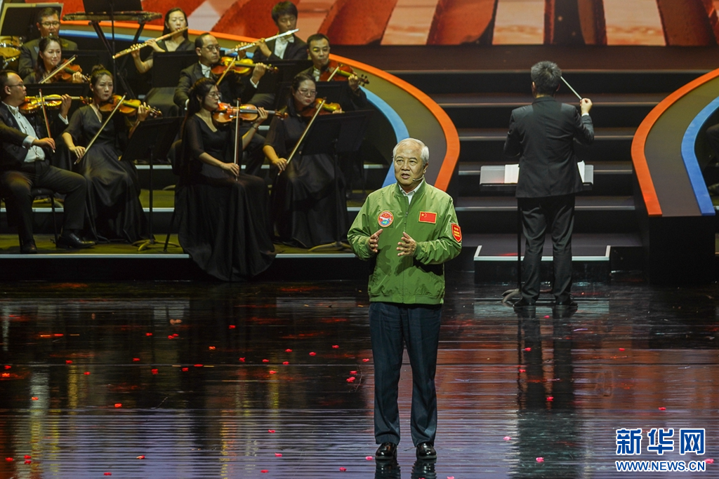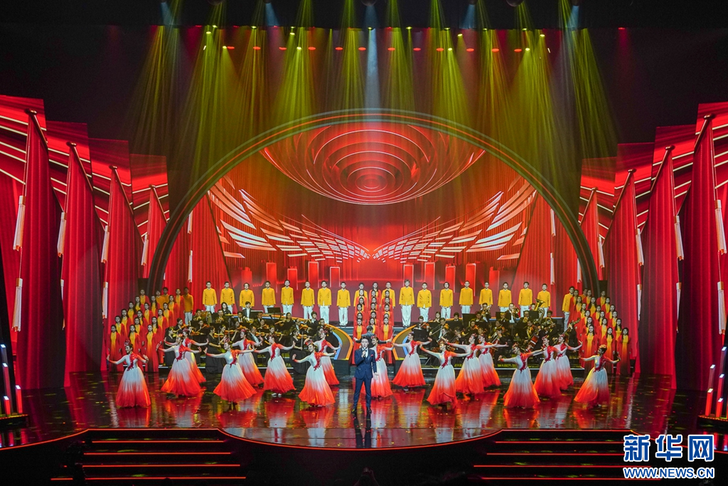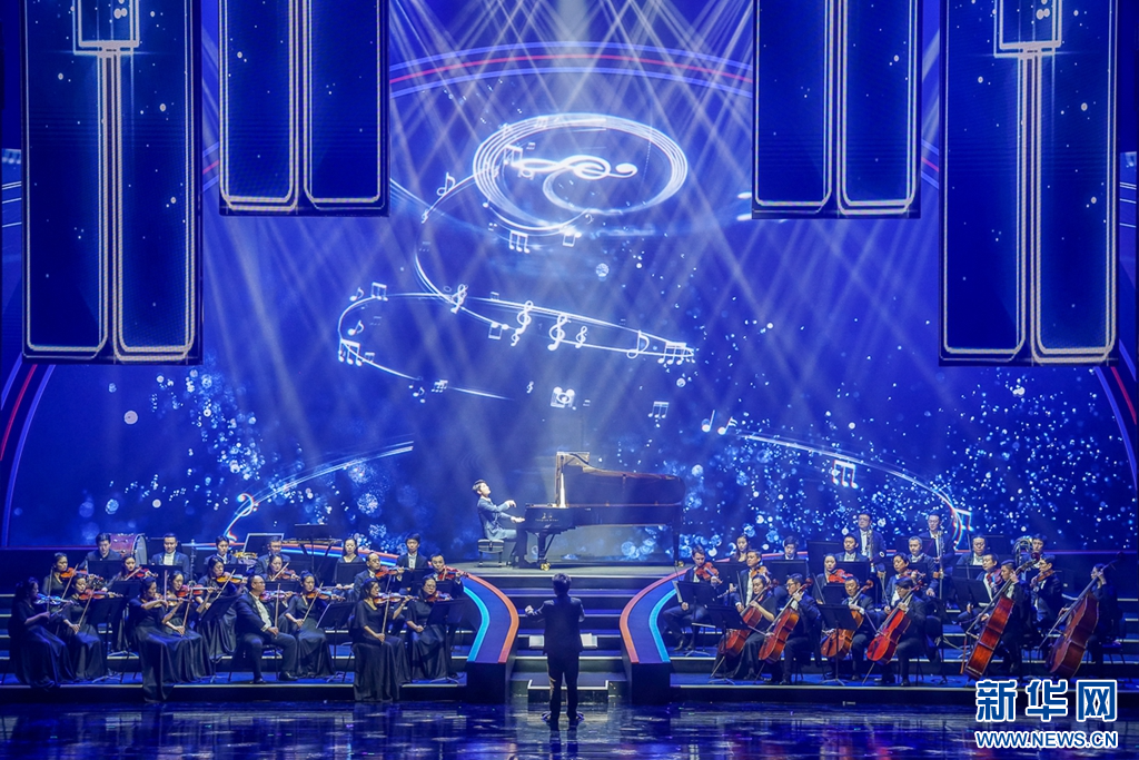 这是7月17日晚上拍摄到的晚会尾声,交响合唱《人民至上》。新华网 肖和勇 摄