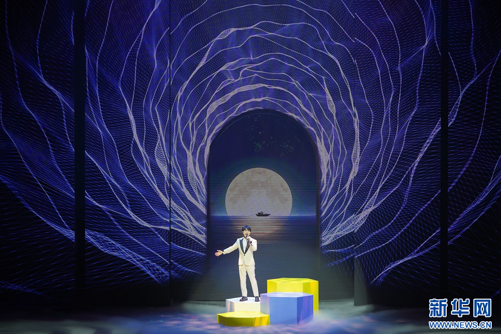7月17日晚上,青年歌手周深在演唱歌曲《梦想的远征》。新华网 肖和勇 摄