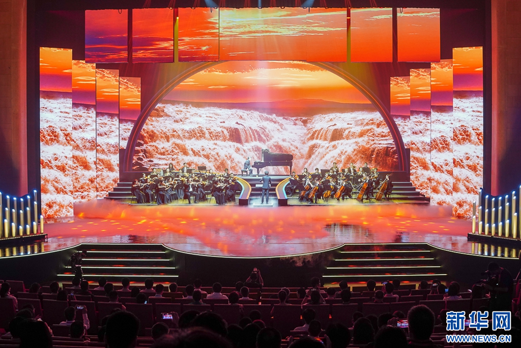 这是7月17日晚上拍摄到的晚会序幕,钢琴协奏曲《黄河》第四乐章:保卫黄河。