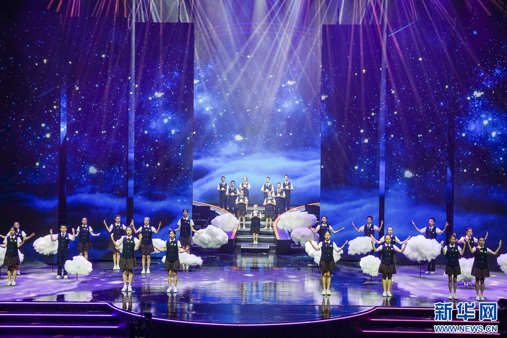 7月17日晚上,厦门六中博雅合唱团在演唱《夜空中最亮的星》。新华网 肖和勇 摄