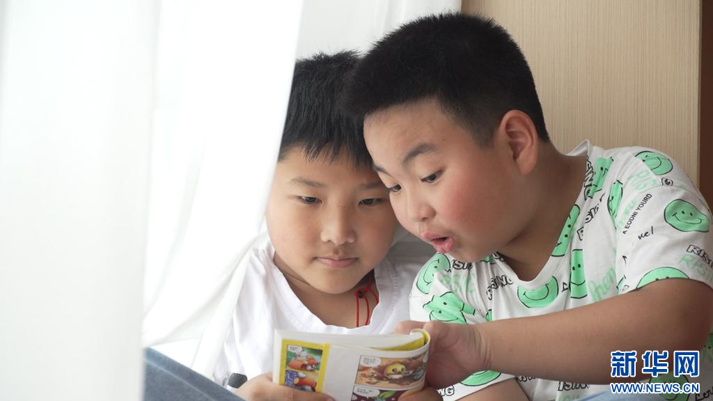 在建阳一中校友公益书吧内,两位小朋友正津津有味地看书。新华网 林晨 摄