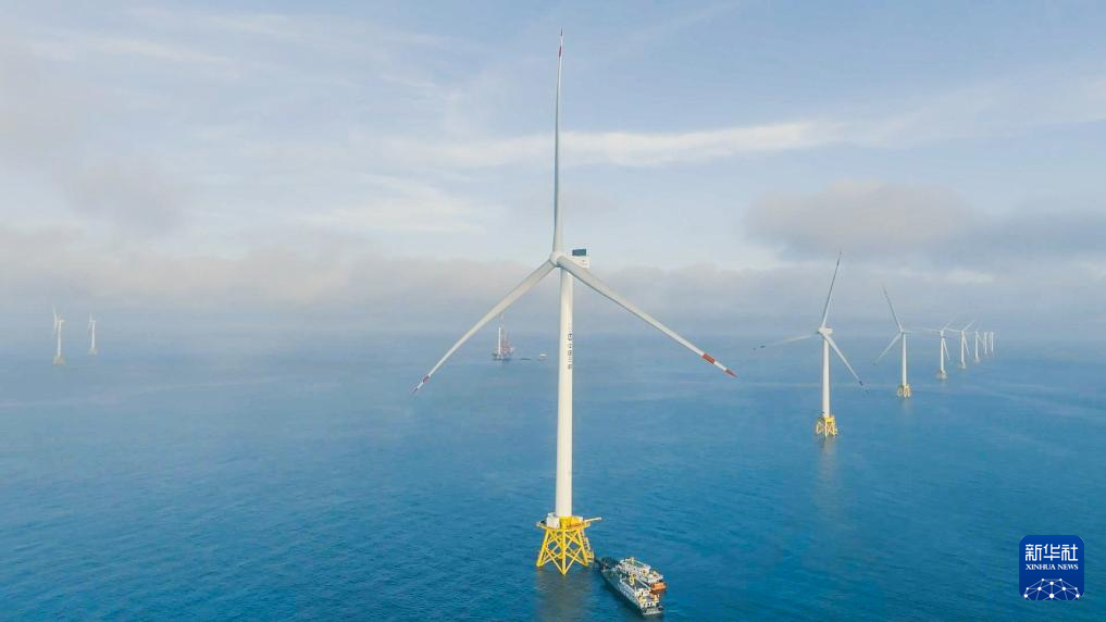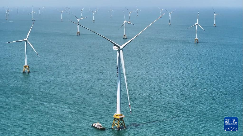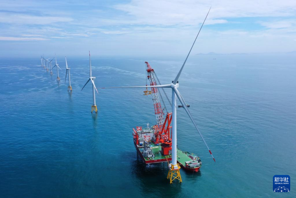 这是在三峡集团福建海上风电场成功并网发电的16兆瓦超大容量海上风电机组(无人机照片,7月19日摄)。新华社发(三峡集团福建公司供图)