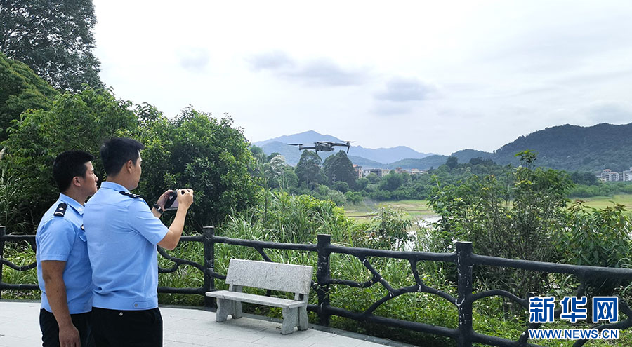 除了接处警情,空管站还助力美丽莆田建设。图为民警用无人机巡查东圳水库。新华网 刘丰 摄