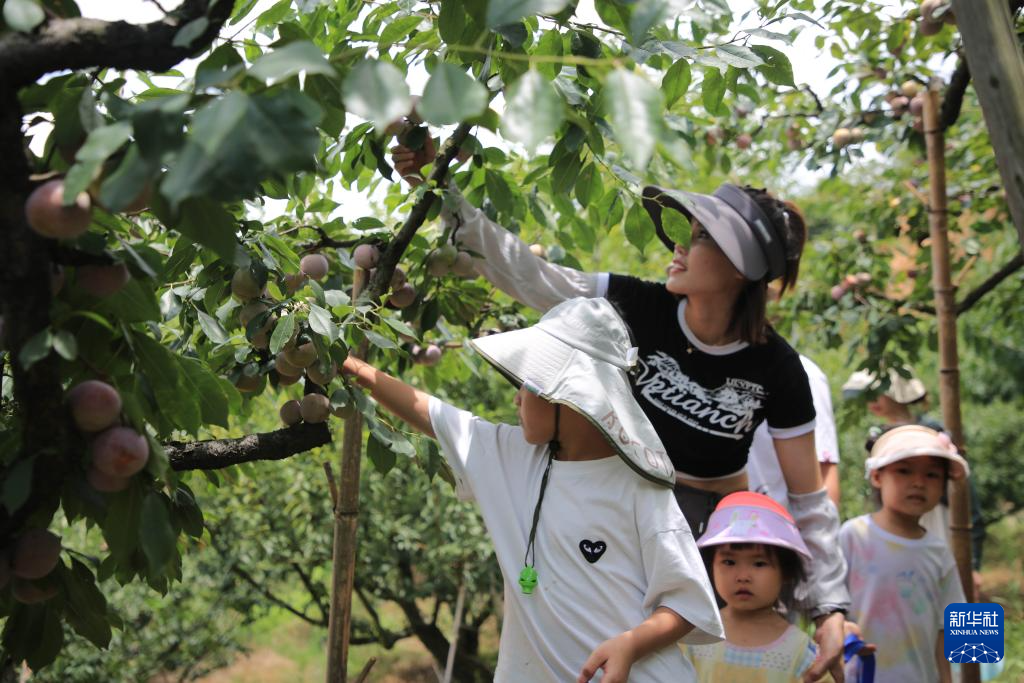 7月21日,游客在连城县四堡镇双泉村的果园采摘芙蓉李。