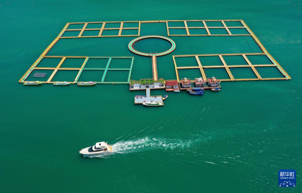 宁德三都澳白基湾海域的新型大黄鱼养殖渔排(无人机照片,7月17日摄)。新华社发(王志凌摄)