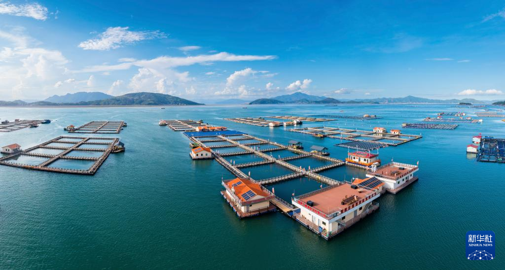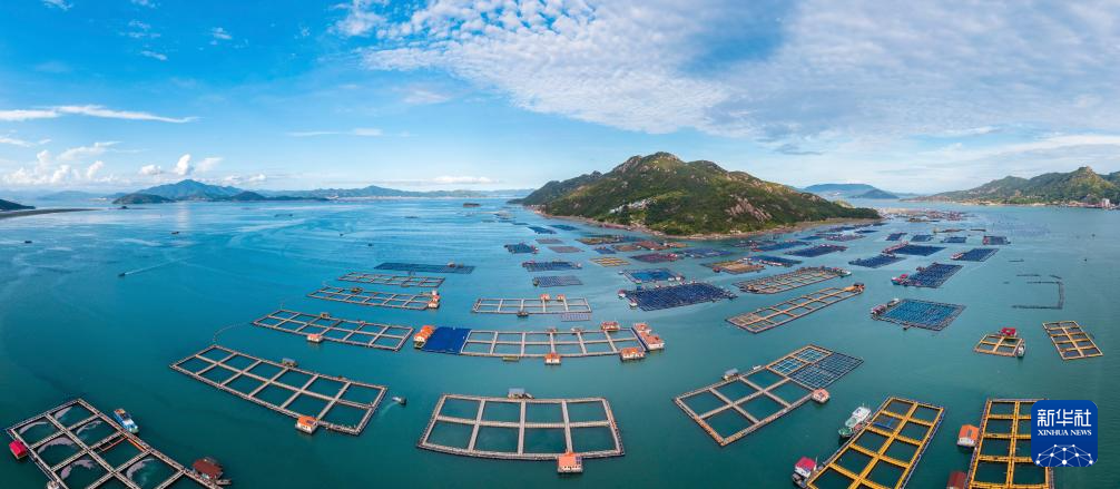 宁德三都澳白基湾海域,新型渔排绵延海上(无人机全景照片,7月17日摄)。新华社发(王志凌摄)