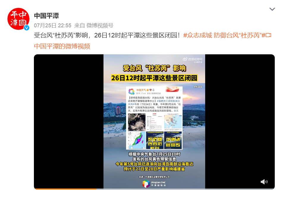 平潭所有景区景点、福州琅岐龙鼓度假村景区、厦门的天竺山森林公园、厦门集美鳌园、漳州平和灵龙谷景区、华安土楼景区、莆田九鲤湖等景区、展馆临时闭园闭馆。