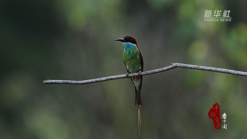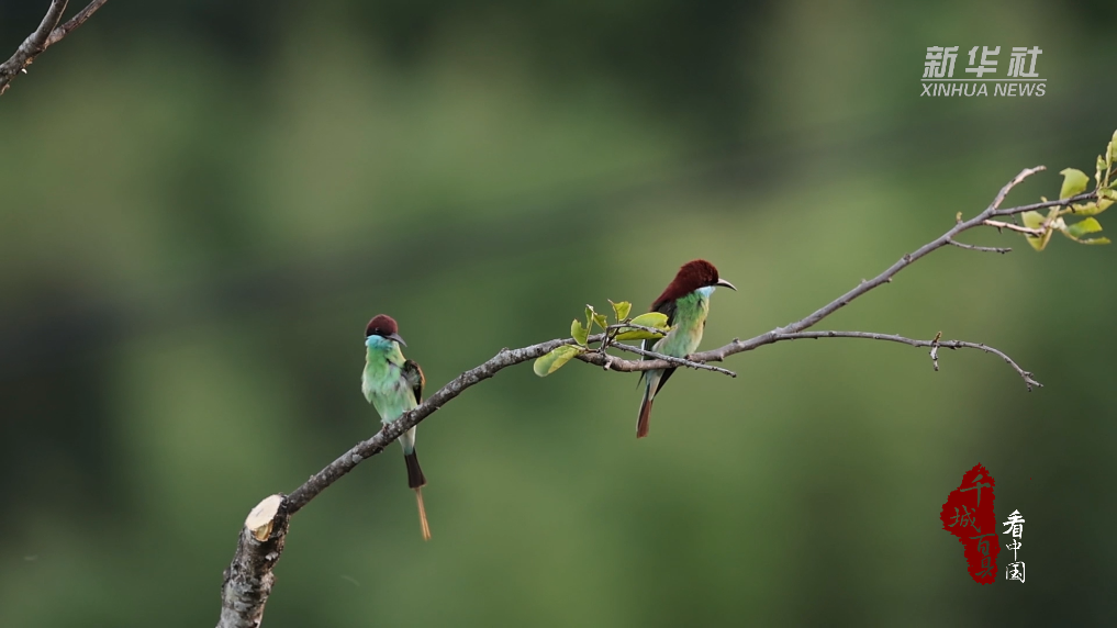 福建省明溪县自然环境优美,生态资源丰富,吸引了大量蓝喉蜂虎来此栖息。在位于盖洋镇村头村的万亩苗木基地生态观鸟点,蓝喉蜂虎在枝头欢快跳跃、自由嬉戏。