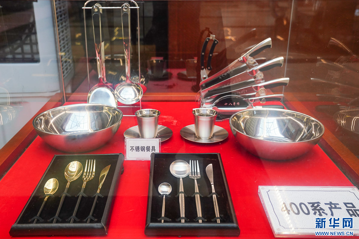 这是青拓集团生产的不锈钢餐具(7月25日摄)。新华网 肖和勇 摄