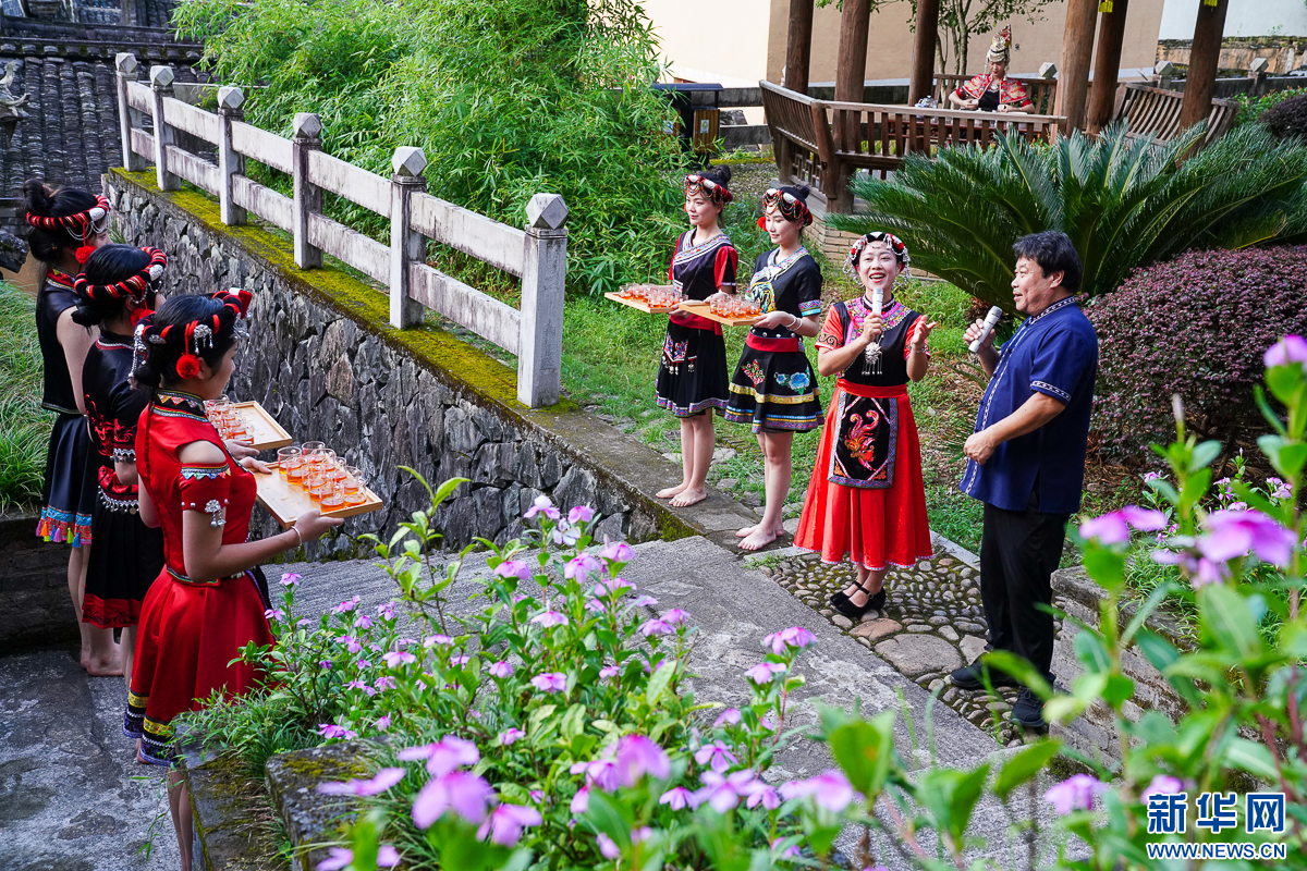 7月25日,坦洋村的畲族青年唱起畲歌,端出坦洋红茶,准备迎接远道而来的游客。新华网 肖和勇 摄