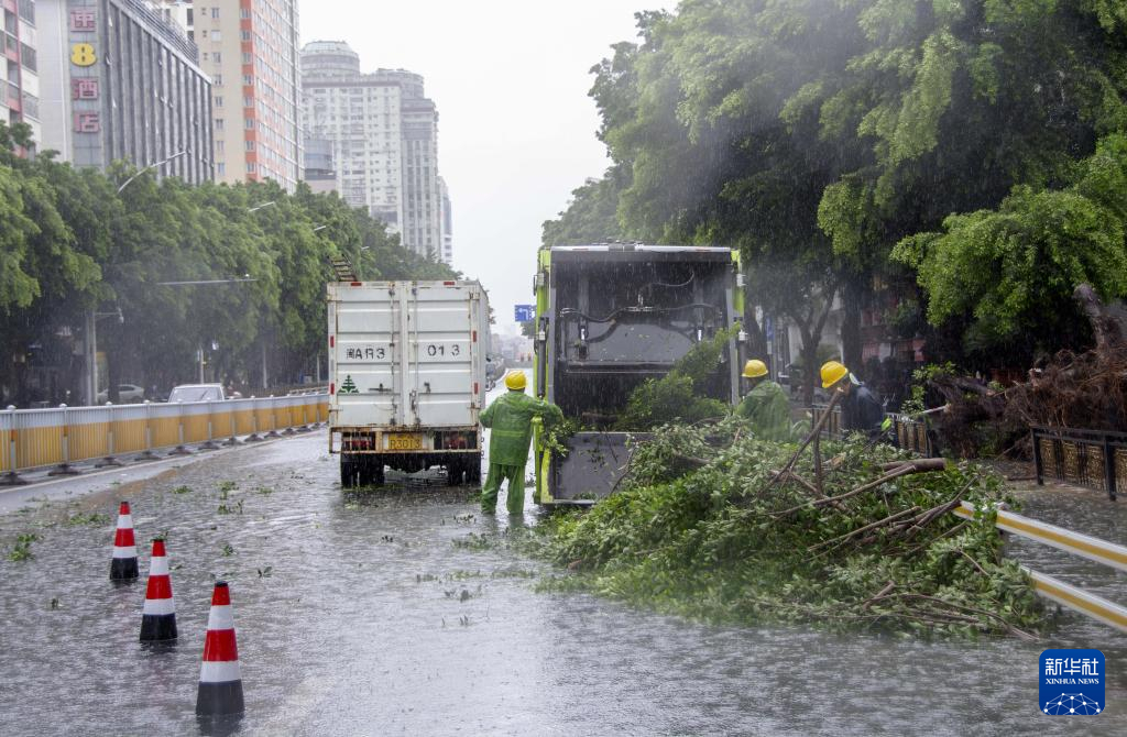 7月29日,工作人员在福州市晋安区福新路上清理被台风刮倒的树木。新华社记者 魏培全 摄
