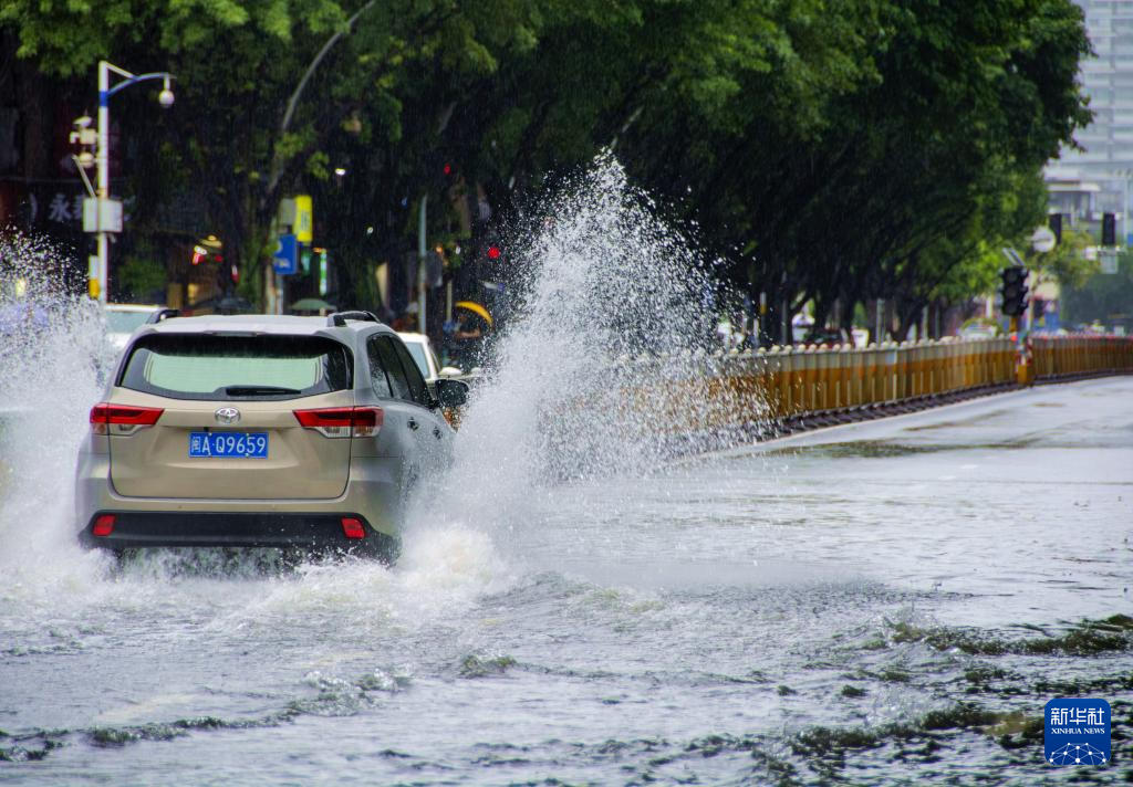 7月29日,车辆驶过福州市晋安区福新路积水路段。新华社记者 魏培全 摄