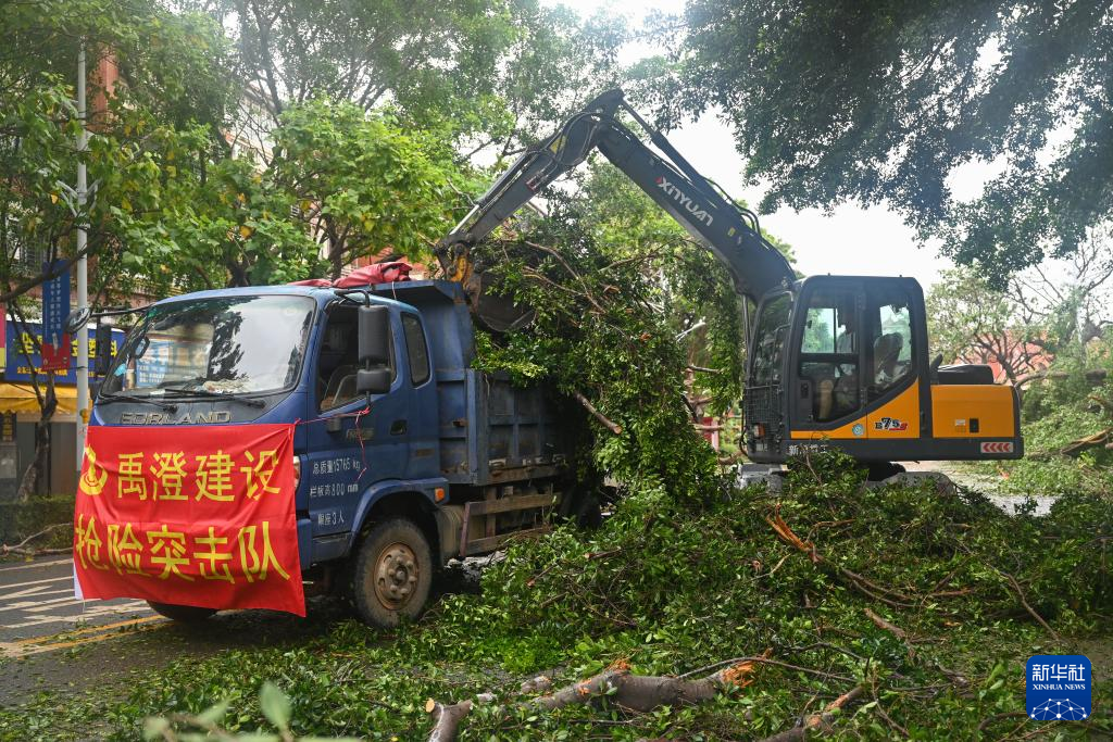 7月29日,在福建泉州市区,来自民间的抢险救援队清理倒伏在主干道的树木。新华社记者 周义 摄