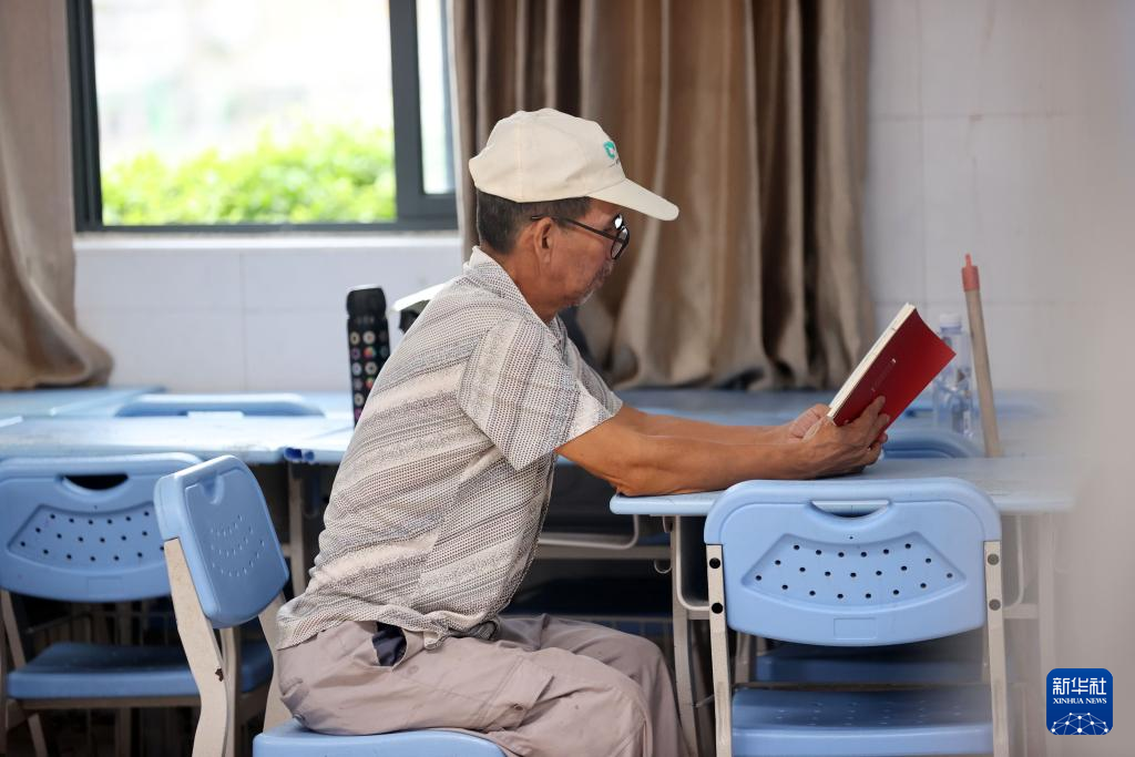 7月29日,一名被转移安置的居民在福建省厦门市新圩学校临时安置点看书。新华社发(曾德猛 摄)