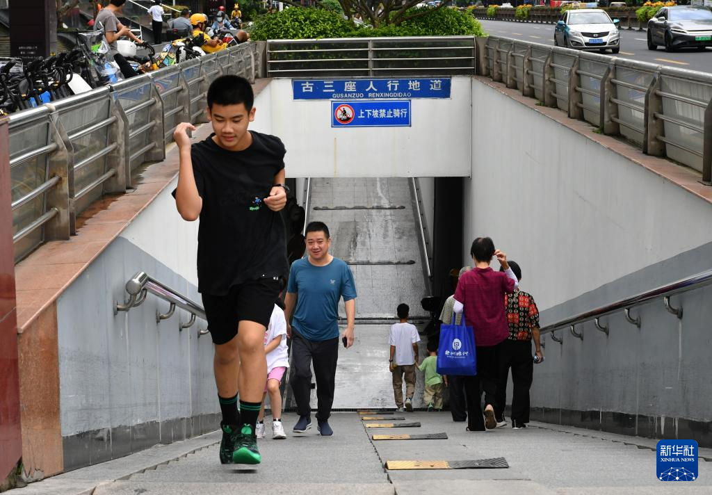 7月30日,位于福州市闹市区五四路上的古三座地下人行通道积水退去,恢复通行。新华社记者 魏培全 摄