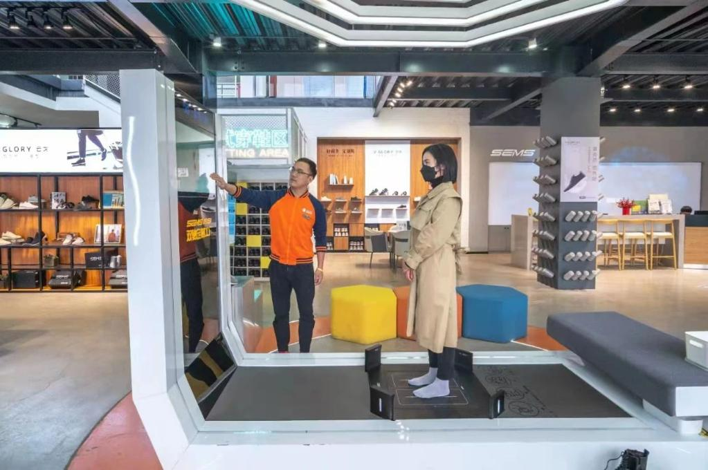 走进莆田双驰实业股份有限公司的“定制工厂”,顾客在大厅的一台仪器上测量脚型,很快,一份详细的脚型报告生成出来,待挑选好鞋款和鞋面图案,订单信息便立即传到厂房。一个多小时后,这双“专属运动鞋”就从订单变成了成品。