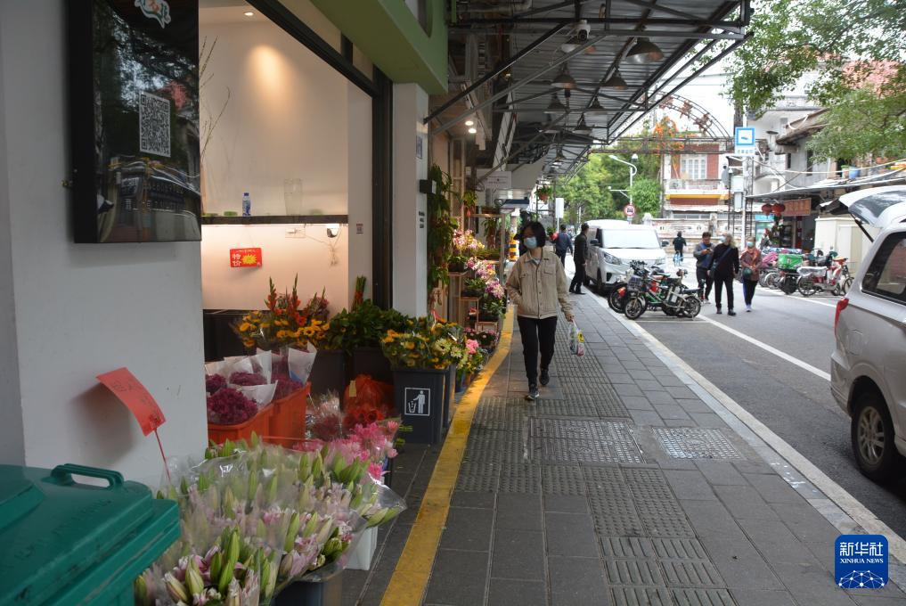 图为2月8日记者拍摄的厦门溪岸路花鸟市场,黄色实线内侧为允许商家“适当经营外摆”的区域。新华社记者 颜之宏 摄