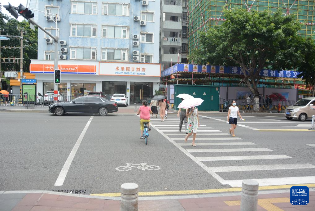 图为8月1日记者拍摄的厦门体育路与育秀东路交叉口的非机动车与行人分流的斑马线。新华社记者 颜之宏 摄