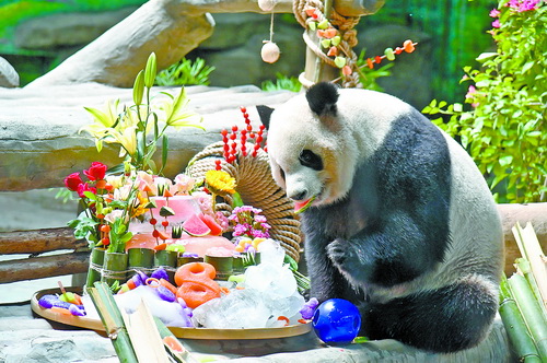 昨日是大熊猫双胞胎兄弟“思念”“思筠筠”的8周岁生日,这也是它们来到厦门的第六个生日。厦门灵玲动物王国为它们举办了“快乐多巴胺,熊猫水当当”主题生日会,并邀请了15对来自海峡两岸的亲子家庭,一起为两只大熊猫庆生。