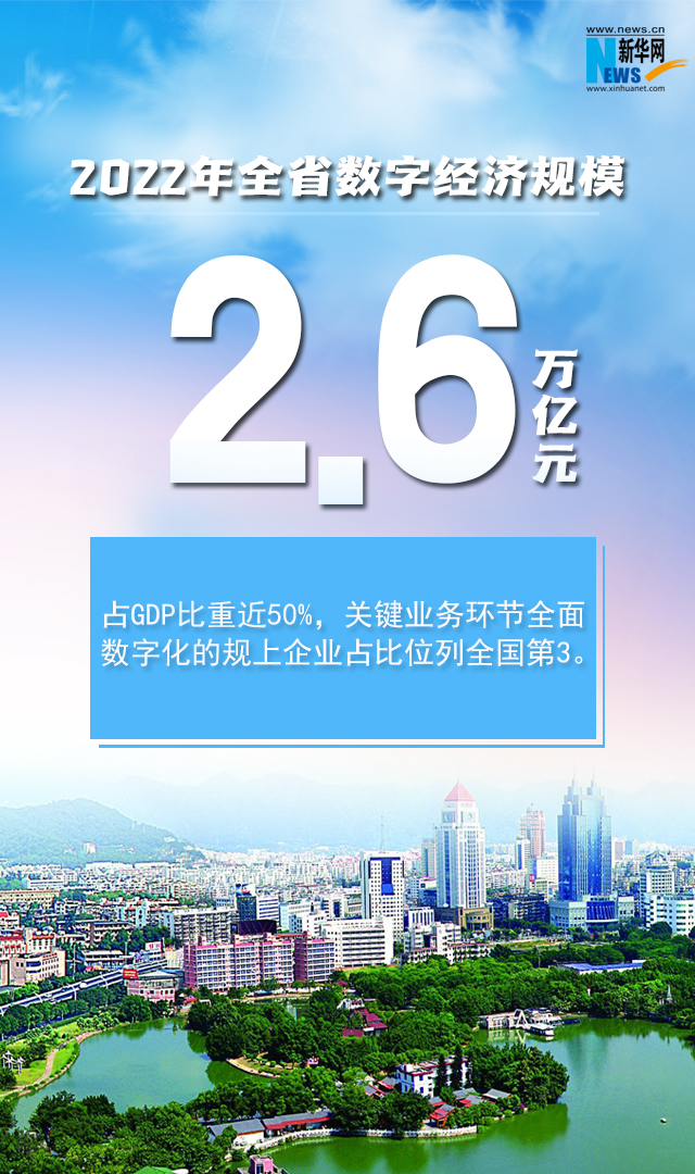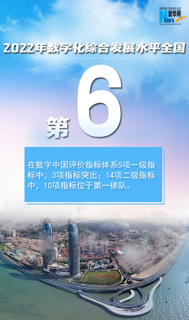 新华网福州8月4日电(蒋巧玲 袁羽)2022年,福建省数字化综合发展水平位居全国第6,全省数字经济规模2.6万亿元,占GDP比重近50%。厦门、福州、泉州、漳州、龙岩数字化综合发展水平位居全省前5位。