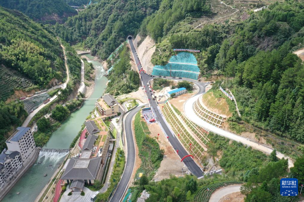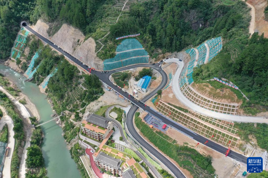 8月4日拍摄的福建省道S207线闽浙界至寿宁下党段通车仪式现场(无人机照片)。新华社记者 林善传 摄