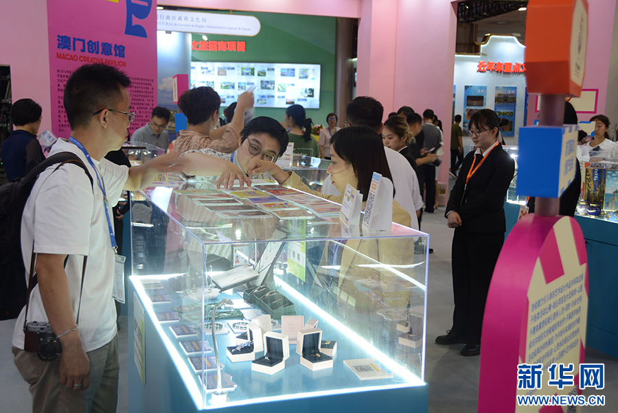 8月4日,在第十四届海峡两岸文博会的“澳门创意馆”,观众正在观展。新华社记者 颜之宏 摄