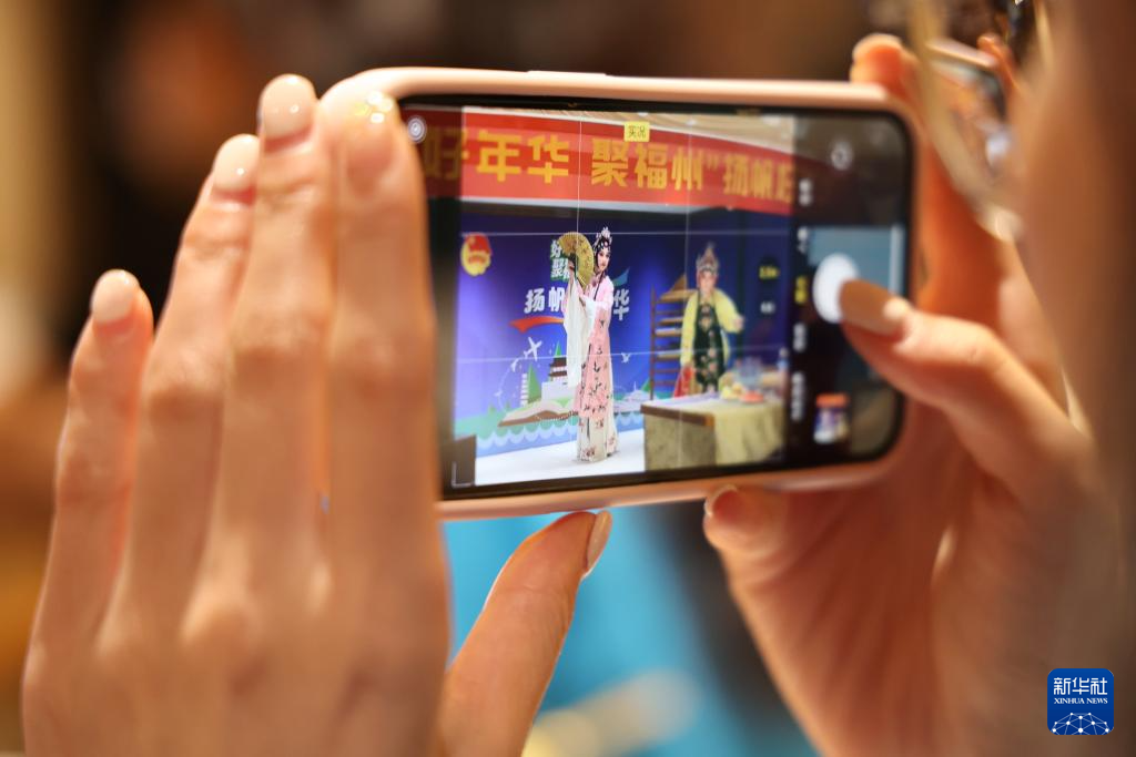 青年学子欣赏闽剧表演,拍照记录。(共青团福州市委员会供图)
