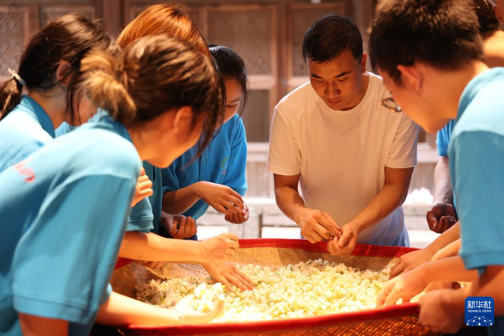 青年学子参加福州茉莉花茶传统工艺体验课。(共青团福州市委员会供图)