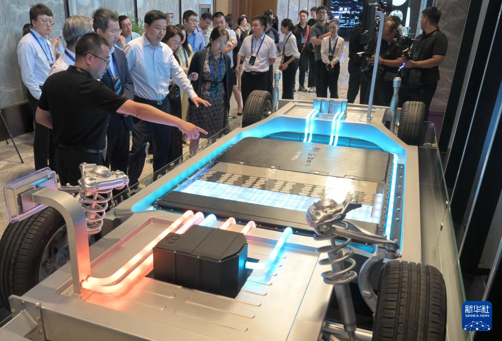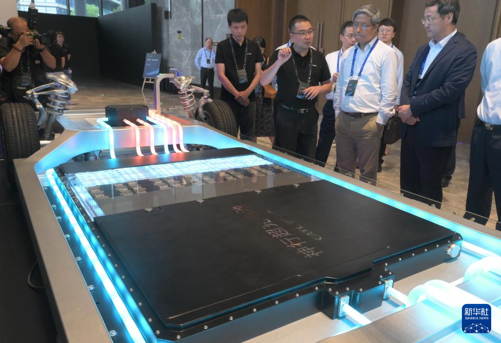 8月16日,参观者在观看宁德时代发布的神行超充电池。新华社记者 林善传 摄