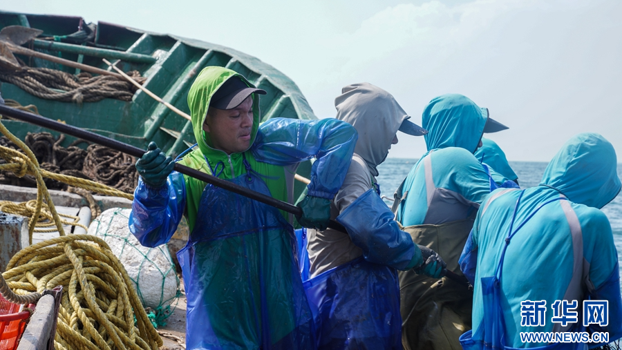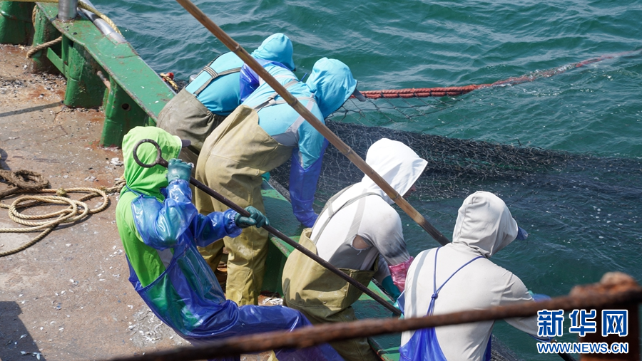 拉网是个体力活,一网鱼至少有1000公斤。新华网 杨濛 摄