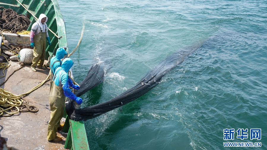 青峰村渔民的捕鱼方式都是定置网捕鱼,一艘渔船至少会下放十多张大网。新华网 杨濛 摄