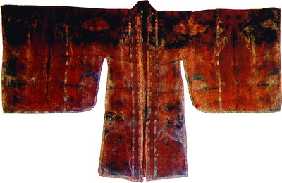 南宋时期,因为政治经济中心南移及海上丝绸之路的勃兴,福建手工业空前发展。这件广袖袍出土于黄昇墓。出身显贵的黄昇随葬品十分丰厚,墓中出土的服饰和丝织品就有354件,被誉为“南宋丝绸宝库”。这些服饰和丝织品不仅代表了当时丝织业的一流水平,也将宋代贵族女性日常生活的奢华与娇美展示在世人面前。