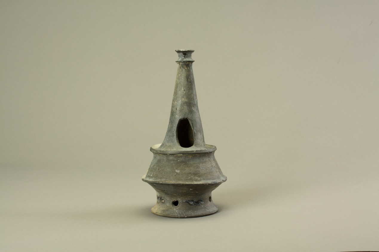 到了距今约7000年前,陶器出现,福建进入新石器时代。昙石山遗址出土的塔式陶壶距今有四五千年的历史,奇特神秘的造型,国内罕见。关于塔式陶壶的作用目前尚无定论,有考古学家认为其被放置于墓主人的头部,由此可见墓主人身份较高,可能是一名巫师,而塔式陶壶可能是宗教法器,另有一说是塔式陶壶是目前国内已发现的最早的灯具,有人称其为“中华第一灯”。