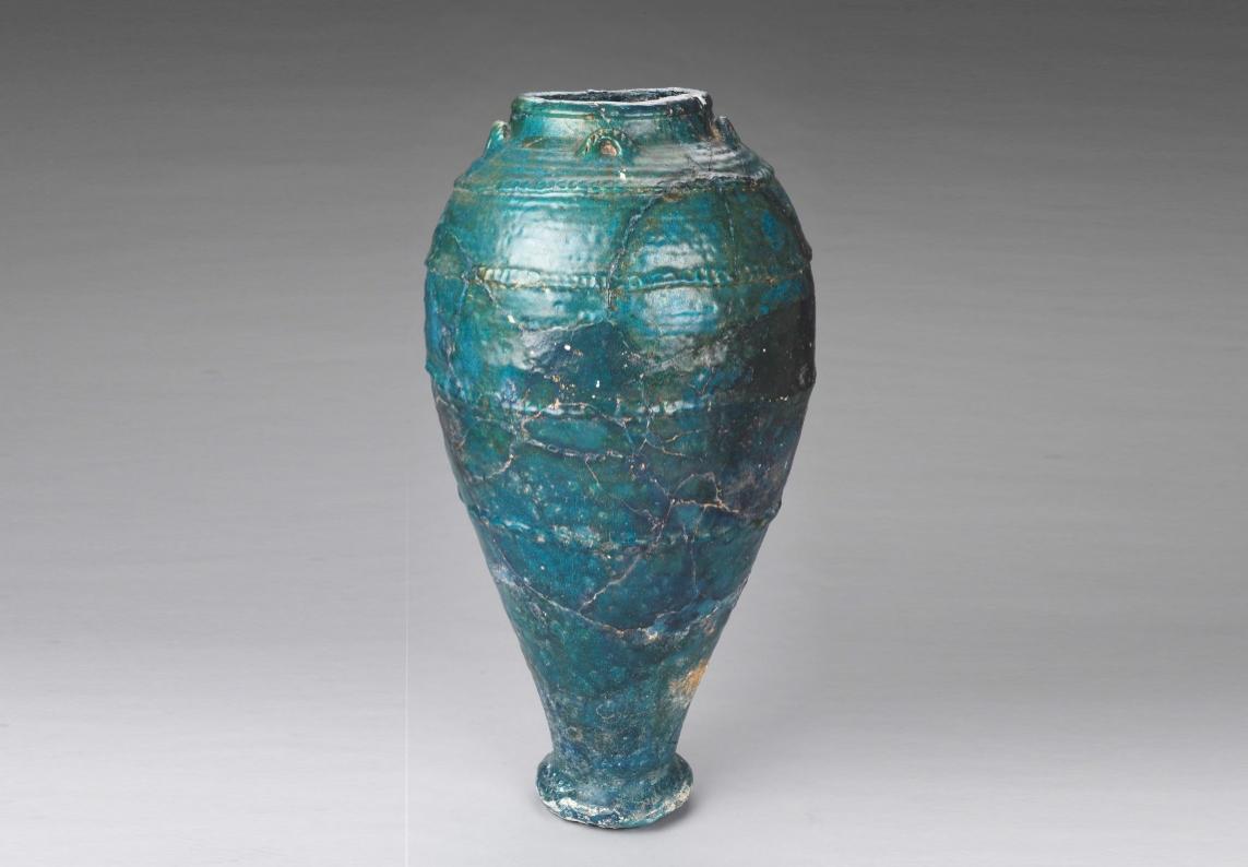 孔雀蓝釉陶瓶是闽国第三代君主王延钧的妻子刘华墓出土的文物中最具特色的一件。类似器物在伊朗、伊拉克等多地都有发现,专家推测它应该是9世纪前后古代波斯的制品,通过海外贸易流传到福建,为当时东西方友好往来的历史提供了实物例证。