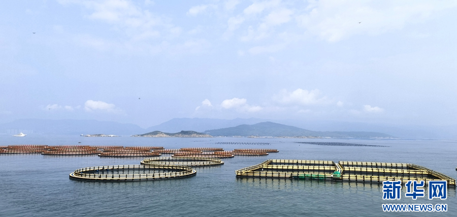 “闽投1号”位于连江定海湾,是福建省首个深海养殖渔旅平台。新华网 刘丰 摄