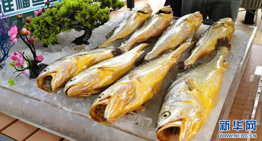 “闽投1号”产出的大黄鱼。新华网 刘丰 摄