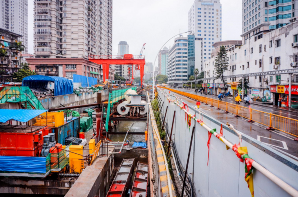 2021年9月,4号线城门站右线盾构接收,福建首个双模式盾构区间双线实现了贯通。